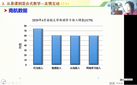 在本次线上分享交流的前一周,理学院依据科罗拉多学习态度量表设计了物理学习投入的调研问卷,问卷涉及学生对一般问题的解决能力、解题信心、对复杂问题的解决能力、个人兴趣、与现实生活的联系、意义理解、概念理解、概念应用等八个维度,并收回了1179份有效问卷。王祖源教授分析了此次调查问卷的数据,肯定了PA视讯学生在线上教学阶段对物理学习的积极投入。