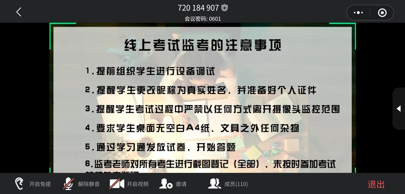 接着胡诗帆老师结合理学院从4月份以来开展的线上周测情况,介绍了线上考试的组织与策划以及相关监考方面的经验和注意事项。线上周测主要通过腾讯会议软件、哔哩哔哩直播实现。学生提前进入网络会议室调试设备,辅导员在线测试。前期准备、测试工作结束后,将试题发布于年级群中,并通过腾讯会议室视频功能进行监考。测验结束后,限定学生在5分钟之内将答卷拍照上传至指定人员处。胡诗帆还指出在正式考试中摄像头的摆放位置调试极为重要,考试之前至少提前半小时对学生摄像头角度进行调试,摄像头应置于学生侧后方,画面中应能够清晰显示学生、桌面以及看题设备屏幕,尽可能减少监控盲区,提高监考的有效性。