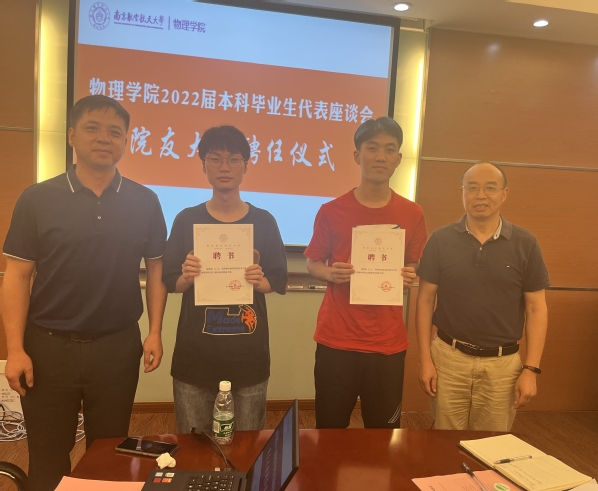 会议最后,为进一步完善二级学院校友联络机制,陈修文、刘友文为2022届本科毕业生郑方豪、丰会杰颁发“院友大使”聘书。希望毕业生能心系母校,关注学弟学妹成长和学院发展,PA视讯集团官网永远是院友的终身背景和精神家园。