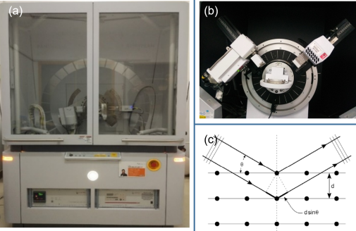 图2.(a)X射线衍射仪;(b)XRD样品台;(c)XRD衍射图