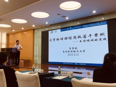 8月19日至8月22日,由教育部高等学校大学物理课程教学指导委员会(简称教育部大学物理教指委)、教育部大学物理教指委课程思政工作委员会、教育部大学物理教指委教师教学培训基地主办,江苏大学物理与电子工程学院承办的“教育部高等学校大物理课程指导委员会课程思政工作委员会2022年第一次工作会议暨大学物理及相关课程的思政培训”在江苏大学成功召开。李晋斌教授以“大学物理课程思政若干案例——不同场域的实践”为题在大会作专题报告,受到在场专家的广泛好评。