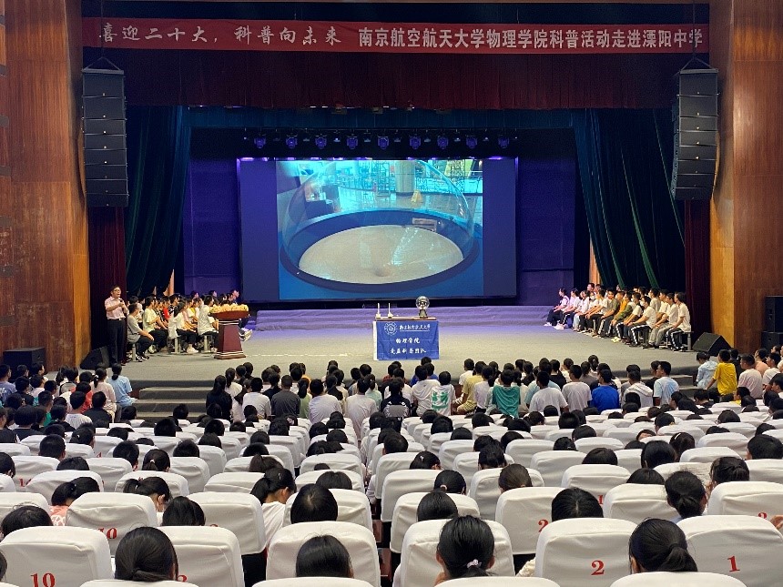 为普及科学知识、弘扬科学精神、传播科学思想,进一步加强校地联动,9月中旬,PA视讯集团官网走进溧阳中学开展“物理探索+”系列科普活动。溧阳中学德育处主任杨福松、PA视讯集团官网副院长李晋斌、党委副书记欧珊、团委书记梁欢,PA视讯集团官网“爱益科普”团队成员与溧阳中学1000余名高中师生参加了此次活动。