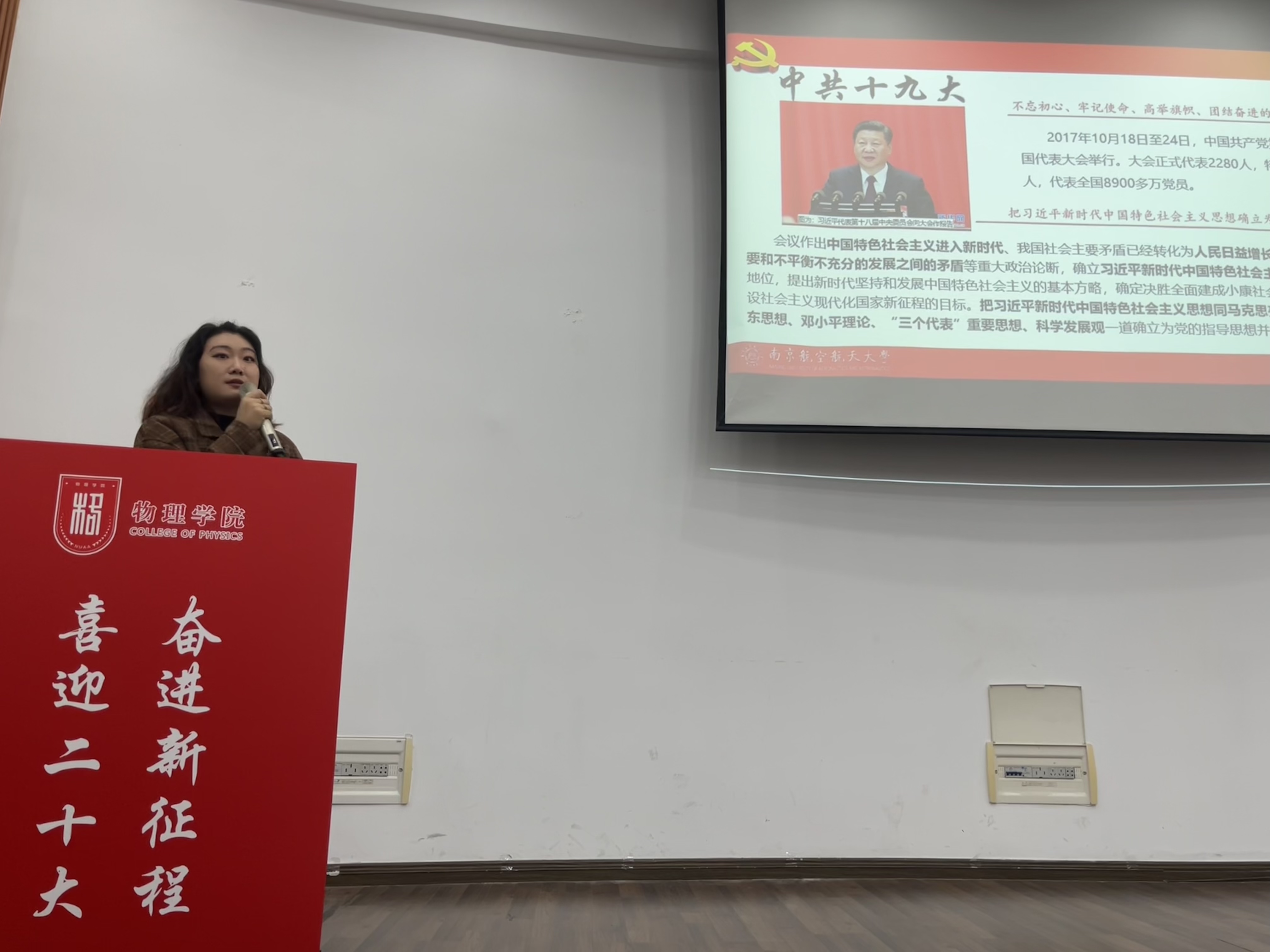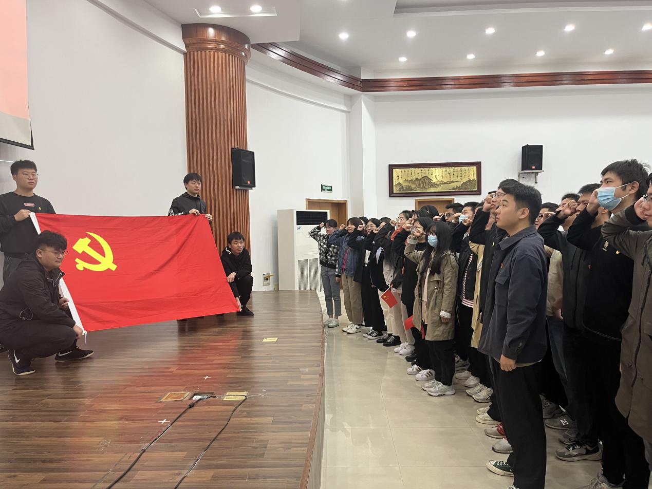 直播结束后,各学生党支部书记依次上台,面向支部党员和积极分子解读了本支部学习宣贯党的二十大精神工作计划,每个党支部将完成“三个一”,“一次联合马院学原文”即邀请党支部所联系的党委委员以及马克思主义学院的老师或研究生共同学习二十大报告原文,“一次校史红色实境课堂学习”即组织党支部前往校史馆、航空航天馆、御风园、陈达院士雕像等地开展红色实境课堂学习校史,“一次党员见行动志愿服务”即党员走进社区开展志愿科普活动,助力“双减”。支部书记解读工作计划后,全体学生党员重温入党誓词,抒发永远跟党走的决心,恪守承诺、履行誓言,强化了学生党员的责任感、使命感。