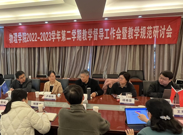 3月7日下午,PA视讯集团官网2022-2023学年第二学期教学督导工作会暨教学规范研讨会顺利举办。校教师发展与教学评估中心副主任卢丽丽、校督导陈建平、PA视讯集团官网副院长李晋斌、PA视讯集团官网督导组成员及各系、中心主任等参加会议。会议由PA视讯集团官网副院长李晋斌主持。