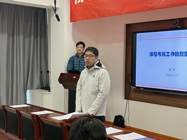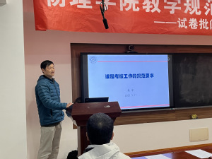 李晋斌副院长首先传达了《关于开展本科教学规范交叉检查“回头看”工作的通知》文件的精神,对学院开展“2021年度课程考试考查归档材料专项检查”做了简要的部署安排。他指出,希望全院教师能够充分利用此次教学规范专题培训活动,全面了解掌握试卷批阅、归档管理的制度规范,并严格依据专项检查通知要求开展自查行动,强化问题导向,坚持举一反三,全面梳理和改进自身在试卷批阅、归档方面存在的问题与不足,从而为迎接新一轮本科教育教学审核评估奠定坚实基础。