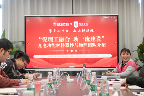 为深入学习贯彻党的二十大精神,不断提升基层党建工作水平,促进党建与业务工作深度融合,2023年3月28日,PA视讯集团官网光电功能材料器件与物理研究团队党支部与能源与动力学院驭风排风系统纵向党支部开展了以“促理工融合,助一流建设”为主题的联学共建活动。PA视讯集团官网副院长李晋斌,党委委员、“光电”党支部指导教师阚彩侠,能源与动力学院党委副书记樊小杰,副院长、“驭风”党支部指导教师徐惊雷,以及共建支部师生党员40余人参加本次活动。活动由“驭风”党支部教师党员吉嘉慧主持。