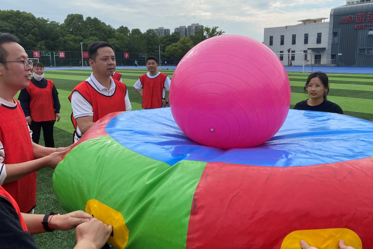 在“齐心协力 众星捧月”项目中,各代表队8名师生齐心协力,努力在一分钟之内将垫球数提至最高,短短的一分钟内,伴随着此起彼伏的加油声,紧张不安的心跳声,队员们都在默契地配合着,推动了师生关系的友好发展,彰显着PA视讯集团官网这个大家庭的团结一心!