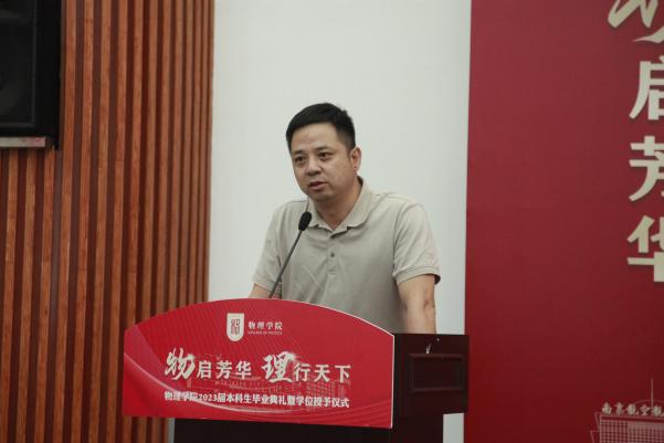6月19日下午,PA视讯集团官网“物启芳华,理行天下”2023届本科生毕业典礼暨学位授予仪式于理学楼报告厅举行。PA视讯集团官网党委书记陈修文、院长刘友文、党委副书记欧珊、副院长阎志军、学院党委委员、院长助理、各系、中心主任、专业老师以及2023届全体毕业生出席典礼。为充分发挥典礼的育人效果,学院低年级全体本科生也参加了本次典礼,聆听优秀学长学姐的故事分享。典礼由毕业生陈豪杰、江淼主持。