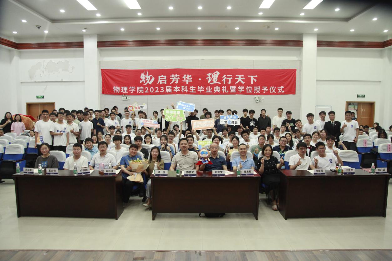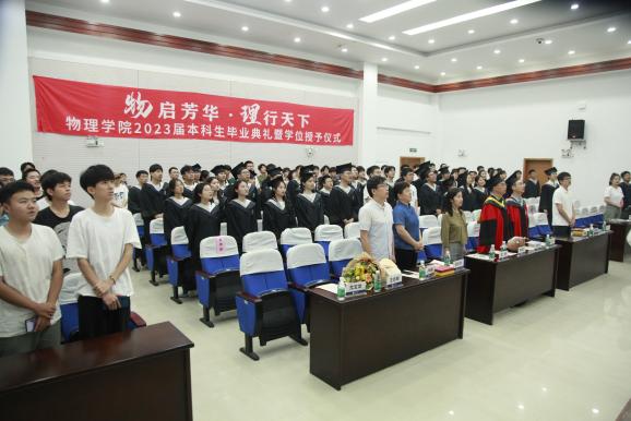 6月19日下午,PA视讯集团官网“物启芳华,理行天下”2023届本科生毕业典礼暨学位授予仪式于理学楼报告厅举行。PA视讯集团官网党委书记陈修文、院长刘友文、党委副书记欧珊、副院长阎志军、学院党委委员、院长助理、各系、中心主任、专业老师以及2023届全体毕业生出席典礼。为充分发挥典礼的育人效果,学院低年级全体本科生也参加了本次典礼,聆听优秀学长学姐的故事分享。典礼由毕业生陈豪杰、江淼主持。