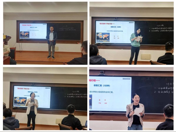 第1、2组的“使者”樊济宇、曹水艳老师就 “大班授课如何有效组织小组讨论”阐述了小组观点。取得以下共识:一是精选题目:以教学知识的重难点为导向,以具体问题为牵引,凝练出有普遍性的问题,组织学生开展讨论,议题模式可采取多议题和单议题不同模式,并给与学生充分了解议题的时间;二是合理分组:通过平时上课的观察、辅导员的沟通、班干部的了解,选择出组织能力突出的同学担任分组组长,自由组成4-6人的讨论小组,且分组模式建议采取不同专业、不同学院分开实施;三是有效组织:在小组研讨组织过程中,要激励全员参与,利用信息化手段,即时分享结果,要有意识将优秀研讨结果进行收集、加工,例如制作案例锦集,供不同班级不同年级学生学习借鉴,同时教师也应该形成共享机制,将优秀的师生共创成果分享给团队。