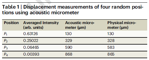 表1:基于轨道原子的声学螺旋测微器与日常使用的螺旋测微器的测量结果对比。